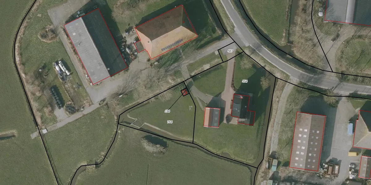 Het adres ligt op het perceel NLD01-J-194, dat zich in de kadastrale gemeente Nieuwland Friesland bevindt. De gemiddelde perceelgrootte in Nieuwland Friesland is 1,4 ha. Dit perceel is kleiner: de perceeloppervlakte bedraagt 12 m². De grootste perceeloppervlakte in de kadastrale gemeente is 42,1 ha. De kleinste oppervlakte bedraagt 0 m². Dit is het enige adres dat aanwezig is op het perceel. In de Basisregistratie Kadaster (BRK) werden de grenzen van het perceel geregistreerd op 03-03-2011.