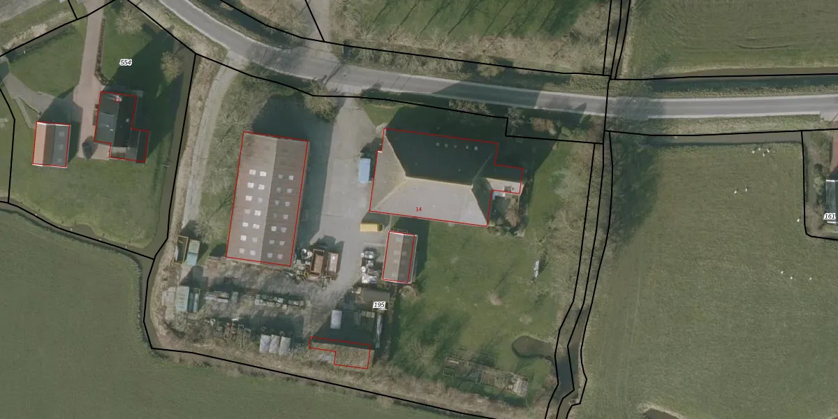 Rige 14 is gelegen op kadastraal perceel NLD01J195. Deze kadastrale aanduiding is uniek en wordt gebruikt door het Kadaster om eigendomsrechten en andere zakelijke rechten vast te leggen. Het perceel maakt onderdeel uit van de kadastrale gemeente Nieuwland Friesland.