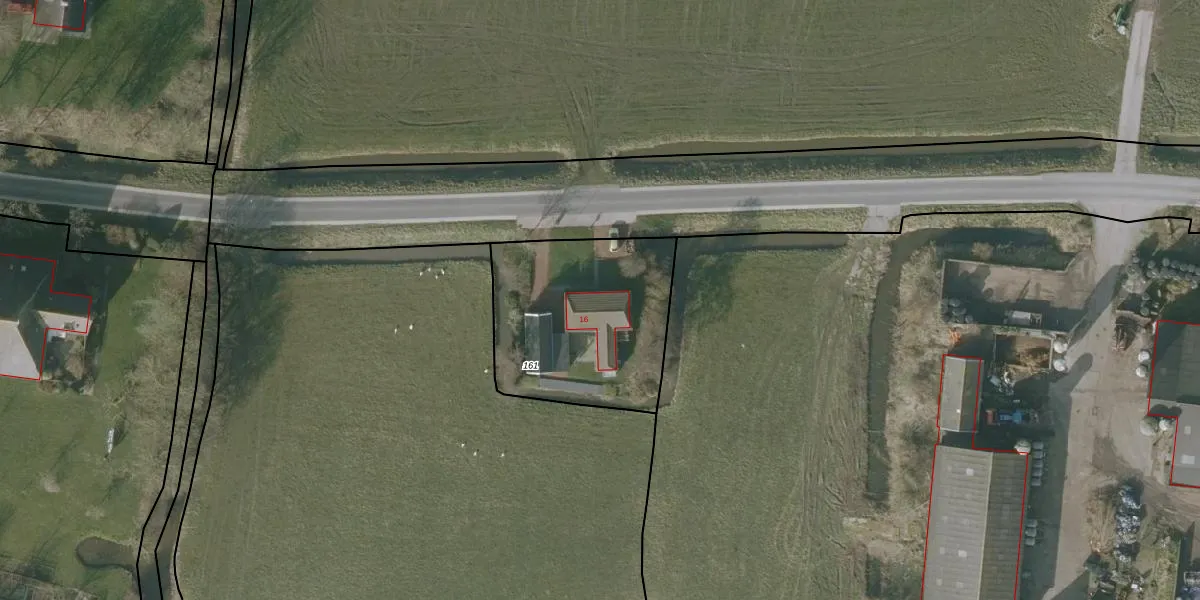 Rige 16 is gelegen op kadastraal perceel NLD01J161. Deze kadastrale aanduiding is uniek en wordt gebruikt door het Kadaster om eigendomsrechten en andere zakelijke rechten vast te leggen. Het perceel maakt onderdeel uit van de kadastrale gemeente Nieuwland Friesland.