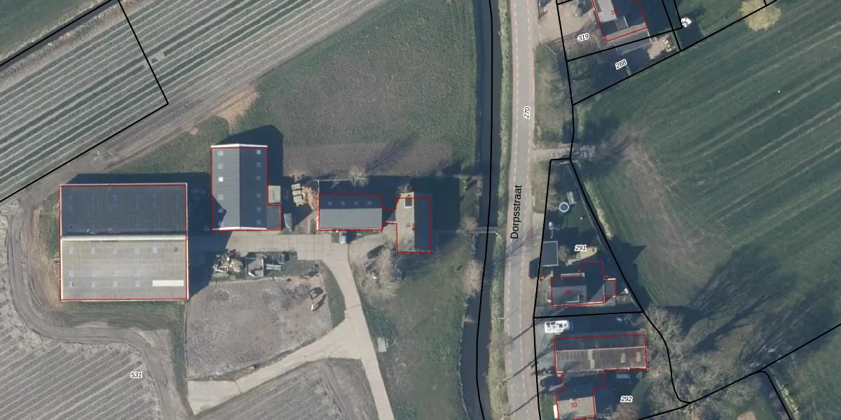 Het perceel waarop Dorpsstraat 8 staat heeft een oppervlakte van 1,8 ha. Dit is een zeer groot perceel. De perceeloppervlakte wordt geregistreerd door het Kadaster. Gedetailleerde informatie over de maten van dit perceel kunt u vinden in het rapport Kadastrale kaart met maatvoering van Dorpsstraat 8.