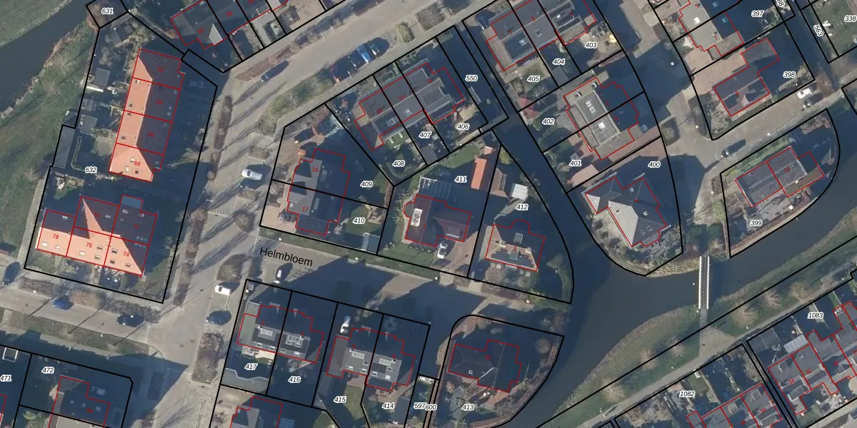 Het perceel waarop Helmbloem 1 staat heeft een oppervlakte van 590 m². Dit is een groot perceel. De perceeloppervlakte wordt geregistreerd door het Kadaster. Gedetailleerde informatie over de maten van dit perceel kunt u vinden in het rapport Kadastrale kaart met maatvoering van Helmbloem 1.