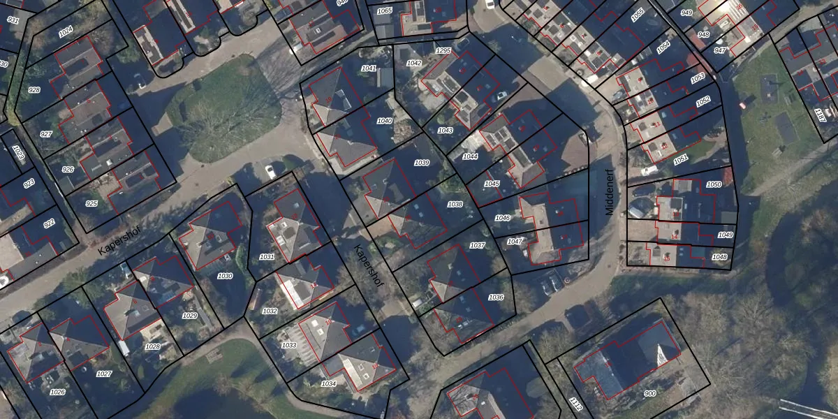 Het perceel waarop Kapershof 25 staat heeft een oppervlakte van 327 m². Dit is een groot perceel. De perceeloppervlakte wordt geregistreerd door het Kadaster. Gedetailleerde informatie over de maten van dit perceel kunt u vinden in het rapport Kadastrale kaart met maatvoering van Kapershof 25.