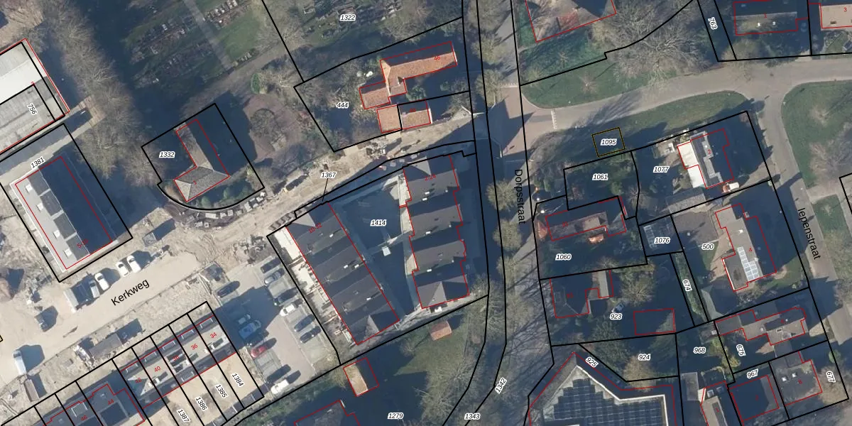 Het perceel waarop Kerkweg 20 staat heeft een oppervlakte van 1615 m². Dit is een zeer groot perceel. De perceeloppervlakte wordt geregistreerd door het Kadaster. Gedetailleerde informatie over de maten van dit perceel kunt u vinden in het rapport Kadastrale kaart met maatvoering van Kerkweg 20.
