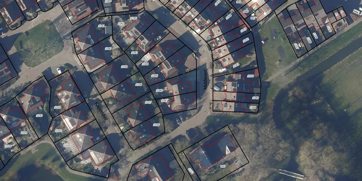 Het perceel waarop Middenerf 18 staat heeft een oppervlakte van 256 m². Dit is een middelgroot perceel. De perceeloppervlakte wordt geregistreerd door het Kadaster. Gedetailleerde informatie over de maten van dit perceel kunt u vinden in het rapport Kadastrale kaart met maatvoering van Middenerf 18.