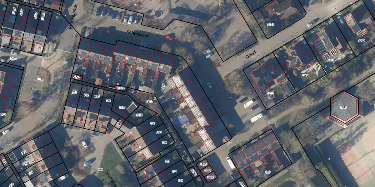 Het perceel waarop Schoolwerf 20 staat heeft een oppervlakte van 2261 m². Dit is een zeer groot perceel. De perceeloppervlakte wordt geregistreerd door het Kadaster. Gedetailleerde informatie over de maten van dit perceel kunt u vinden in het rapport Kadastrale kaart met maatvoering van Schoolwerf 20.