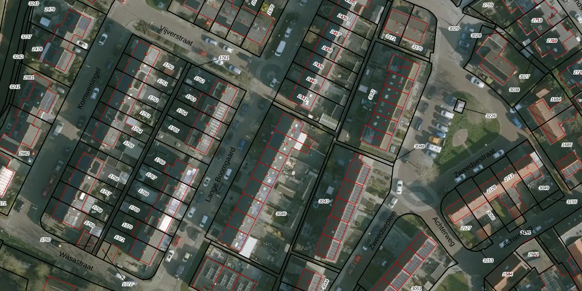 Het perceel waarop Lange Boomgaard 13 staat heeft een oppervlakte van 1354 m². Dit is een zeer groot perceel. De perceeloppervlakte wordt geregistreerd door het Kadaster. Gedetailleerde informatie over de maten van dit perceel kunt u vinden in het rapport Kadastrale kaart met maatvoering van Lange Boomgaard 13.