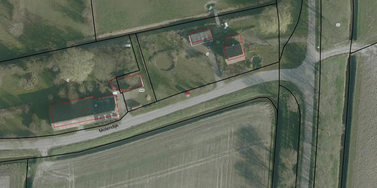 Het perceel waarop Molendijk 2-a staat heeft een oppervlakte van 3340 m². Dit is een zeer groot perceel. De perceeloppervlakte wordt geregistreerd door het Kadaster. Gedetailleerde informatie over de maten van dit perceel kunt u vinden in het rapport Kadastrale kaart met maatvoering van Molendijk 2-a.