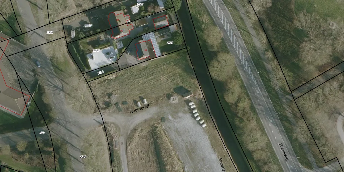 Het perceel waarop Noordererf 21 staat heeft een oppervlakte van 1,7 ha. Dit is een zeer groot perceel. De perceeloppervlakte wordt geregistreerd door het Kadaster. Gedetailleerde informatie over de maten van dit perceel kunt u vinden in het rapport Kadastrale kaart met maatvoering van Noordererf 21.