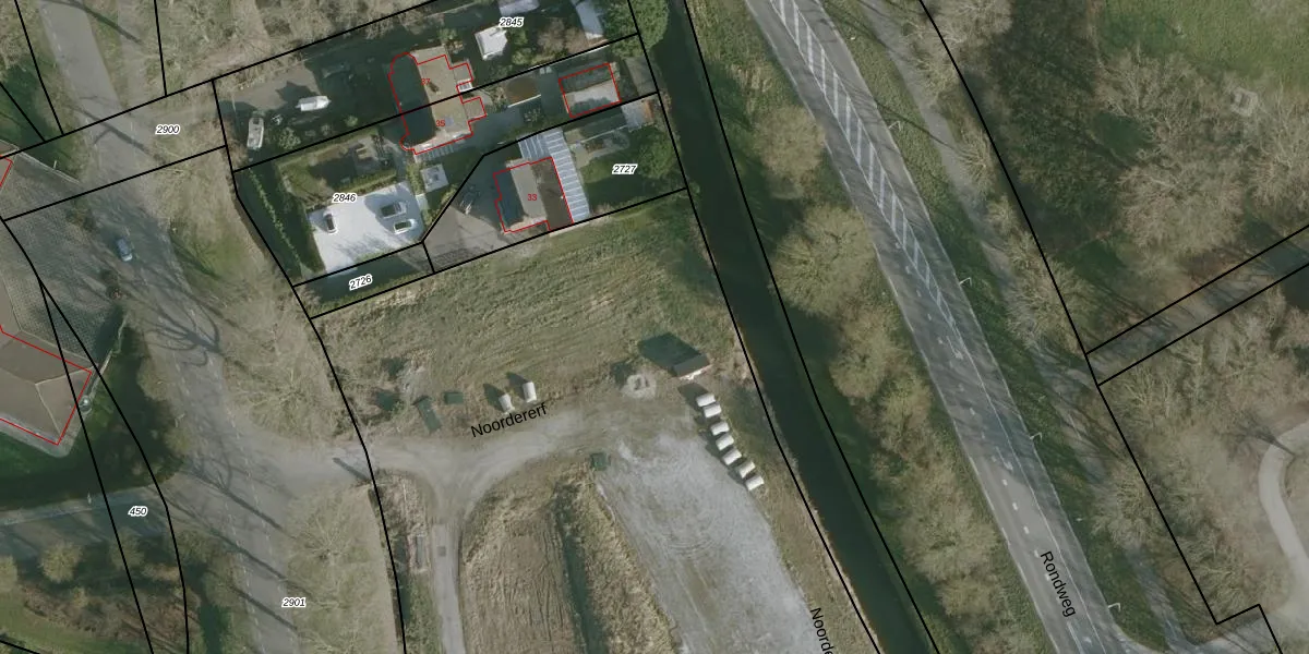 Het perceel waarop Noordererf 23 staat heeft een oppervlakte van 1,7 ha. Dit is een zeer groot perceel. De perceeloppervlakte wordt geregistreerd door het Kadaster. Gedetailleerde informatie over de maten van dit perceel kunt u vinden in het rapport Kadastrale kaart met maatvoering van Noordererf 23.