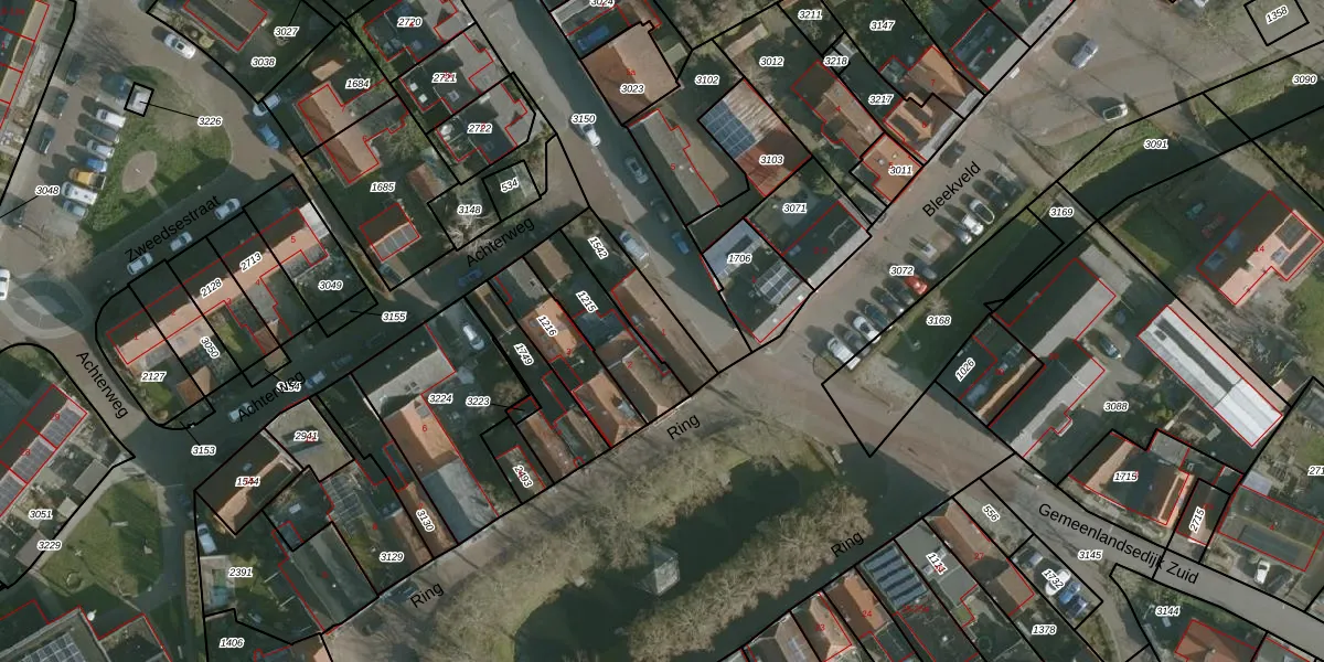 Het perceel waarop Ring 1 staat heeft een oppervlakte van 183 m². Dit is een middelgroot perceel. De perceeloppervlakte wordt geregistreerd door het Kadaster. Gedetailleerde informatie over de maten van dit perceel kunt u vinden in het rapport Kadastrale kaart met maatvoering van Ring 1.