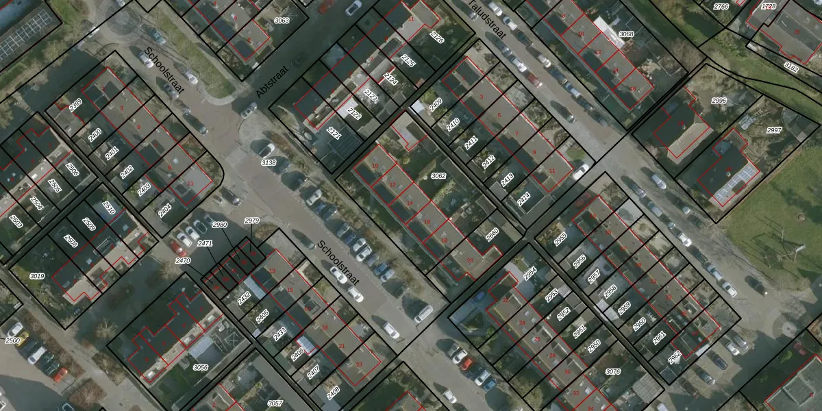 Schoolstraat 14 is gelegen op kadastraal perceel ABB00A3062. Deze kadastrale aanduiding is uniek en wordt gebruikt door het Kadaster om eigendomsrechten en andere zakelijke rechten vast te leggen. Het perceel maakt onderdeel uit van de kadastrale gemeente Abbenbroek.