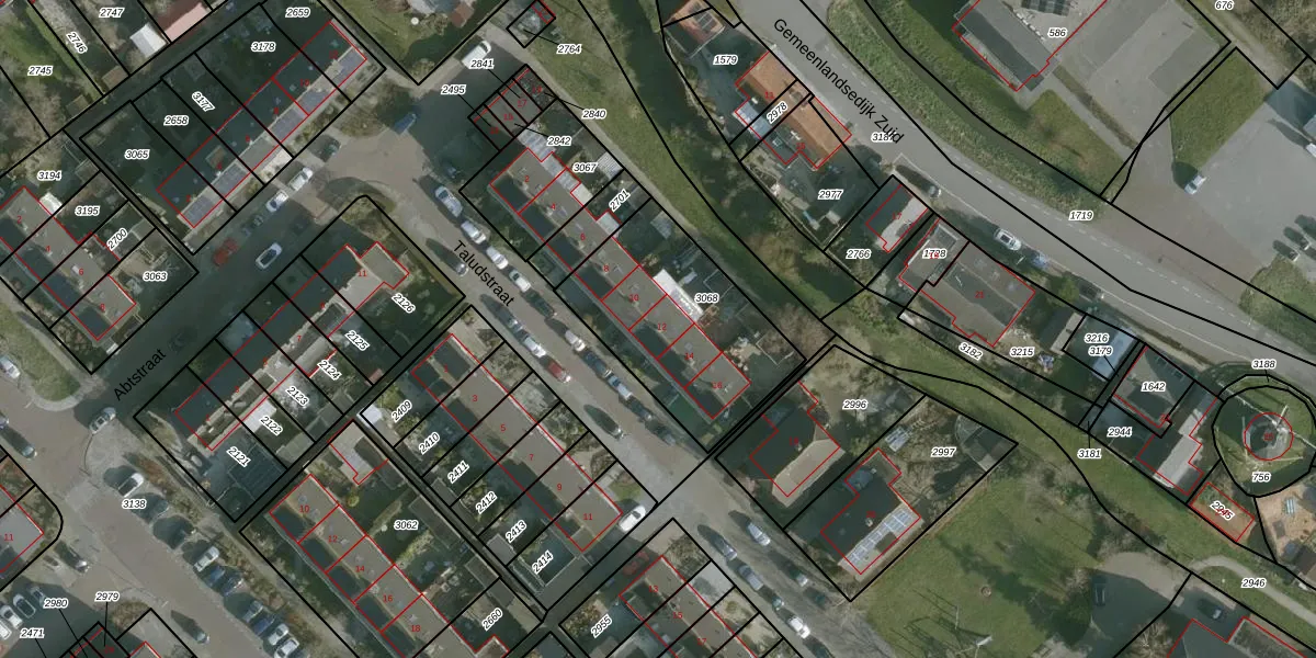 Taludstraat 12 is gelegen op kadastraal perceel ABB00A3068. Deze kadastrale aanduiding is uniek en wordt gebruikt door het Kadaster om eigendomsrechten en andere zakelijke rechten vast te leggen. Het perceel maakt onderdeel uit van de kadastrale gemeente Abbenbroek.