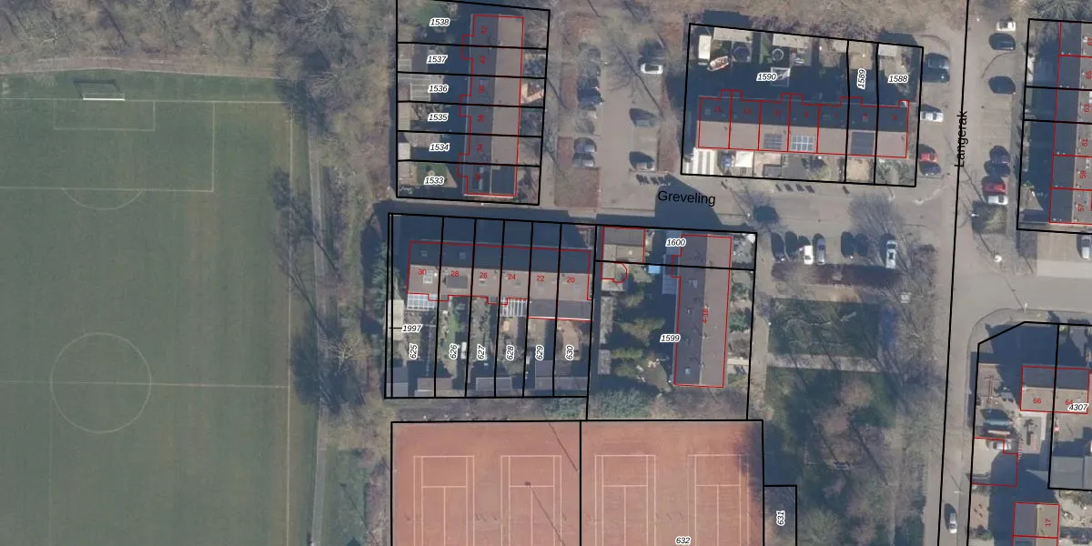 Het perceel waarop Greveling 22 staat heeft een oppervlakte van 174 m². Dit is een middelgroot perceel. De perceeloppervlakte wordt geregistreerd door het Kadaster. Gedetailleerde informatie over de maten van dit perceel kunt u vinden in het rapport Kadastrale kaart met maatvoering van Greveling 22.