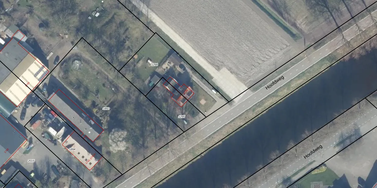 Het perceel waarop Hoofdweg 1735 staat heeft een oppervlakte van 1018 m². Dit is een zeer groot perceel. De perceeloppervlakte wordt geregistreerd door het Kadaster. Gedetailleerde informatie over de maten van dit perceel kunt u vinden in het rapport Kadastrale kaart met maatvoering van Hoofdweg 1735.