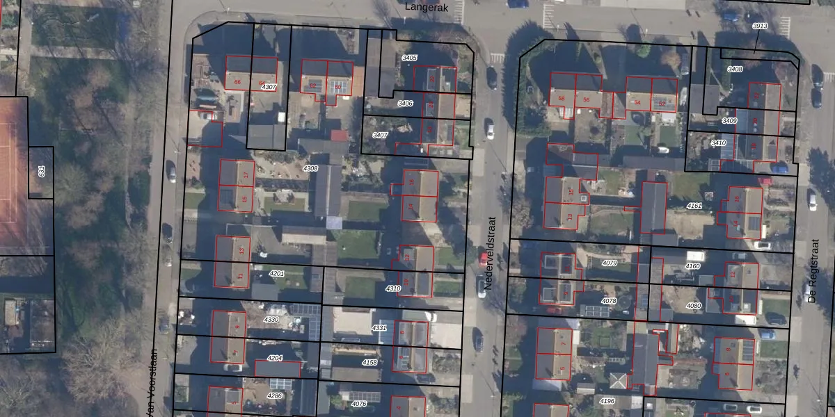 Het perceel waarop Nederveldstraat 14 staat heeft een oppervlakte van 2825 m². Dit is een zeer groot perceel. De perceeloppervlakte wordt geregistreerd door het Kadaster. Gedetailleerde informatie over de maten van dit perceel kunt u vinden in het rapport Kadastrale kaart met maatvoering van Nederveldstraat 14.