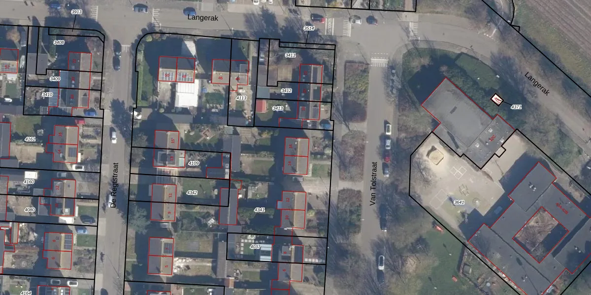 Het perceel waarop Van Tolstraat 16 staat heeft een oppervlakte van 4774 m². Dit is een zeer groot perceel. De perceeloppervlakte wordt geregistreerd door het Kadaster. Gedetailleerde informatie over de maten van dit perceel kunt u vinden in het rapport Kadastrale kaart met maatvoering van Van Tolstraat 16.