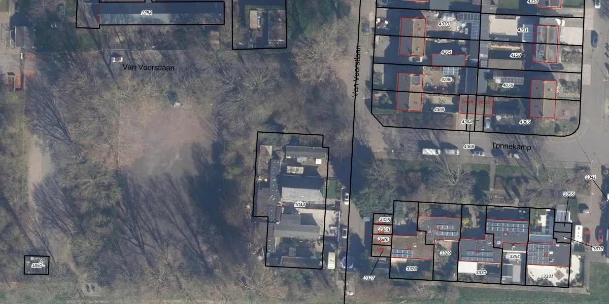 Het perceel waarop Van Voorstlaan 2-D staat heeft een oppervlakte van 950 m². Dit is een groot perceel. De perceeloppervlakte wordt geregistreerd door het Kadaster. Gedetailleerde informatie over de maten van dit perceel kunt u vinden in het rapport Kadastrale kaart met maatvoering van Van Voorstlaan 2-D.