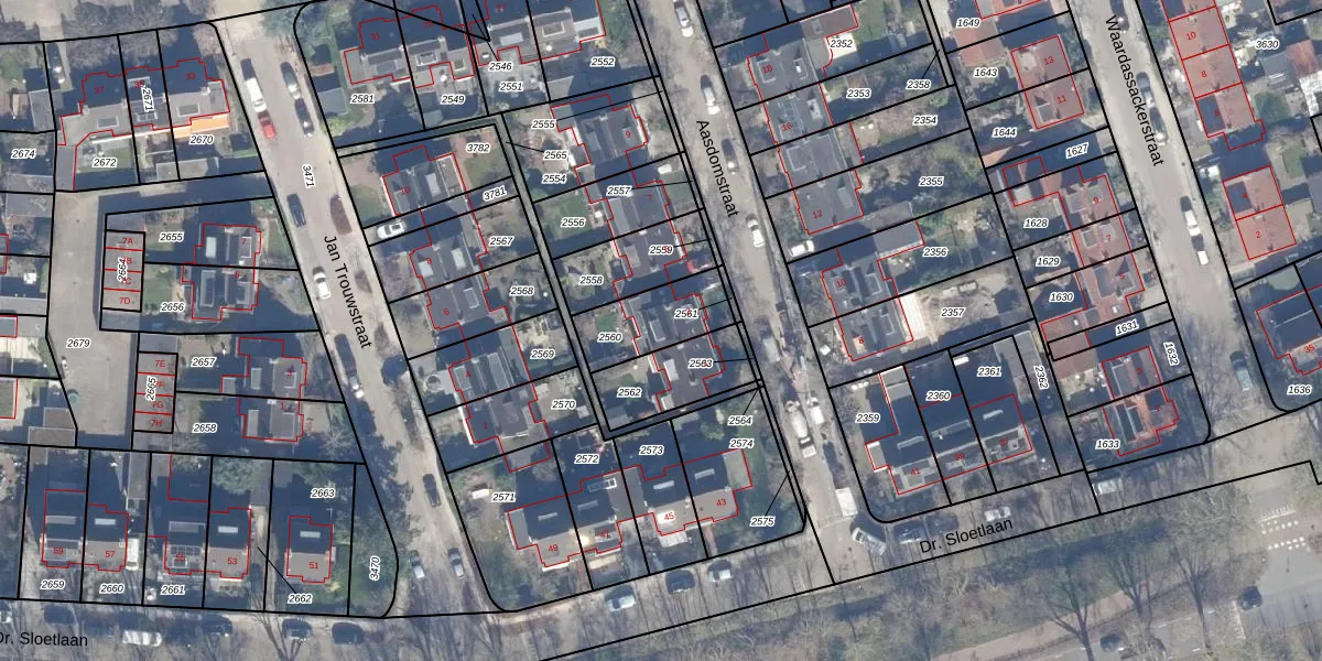 Gebruik de zoekbalk of klik op een perceel voor informatie over de adressen binnen dit perceel.