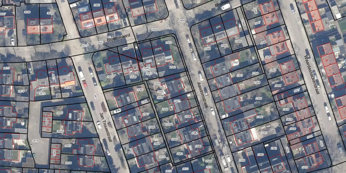 Gebruik de zoekbalk of klik op een perceel voor informatie over de adressen binnen dit perceel.