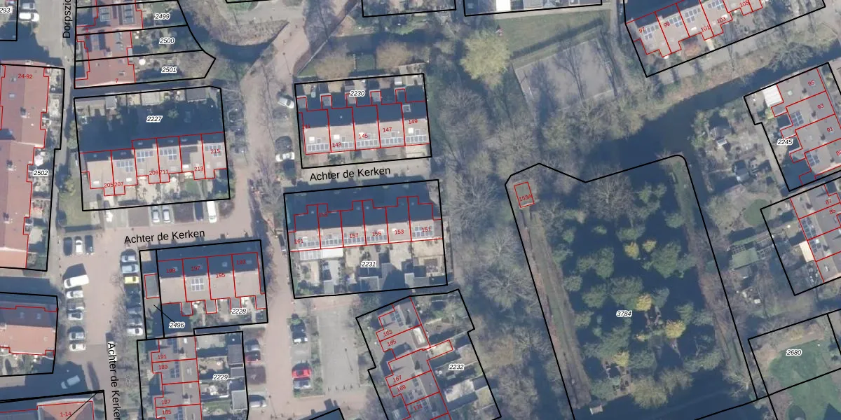 Het perceel waarop Achter de Kerken 151 staat heeft een oppervlakte van 919 m². Dit is een groot perceel. De perceeloppervlakte wordt geregistreerd door het Kadaster. Gedetailleerde informatie over de maten van dit perceel kunt u vinden in het rapport Kadastrale kaart met maatvoering van Achter de Kerken 151.