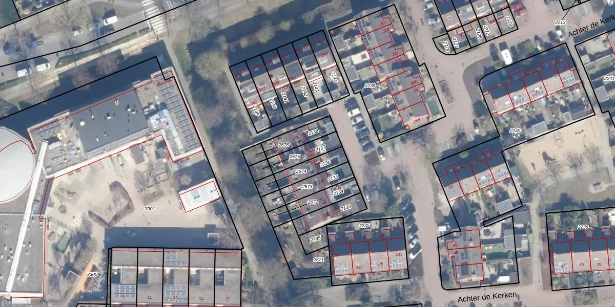 Gebruik de zoekbalk of klik op een perceel voor informatie over de adressen binnen dit perceel.