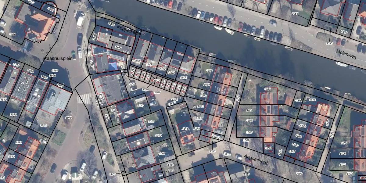 Gebruik de zoekbalk of klik op een perceel voor informatie over de adressen binnen dit perceel.