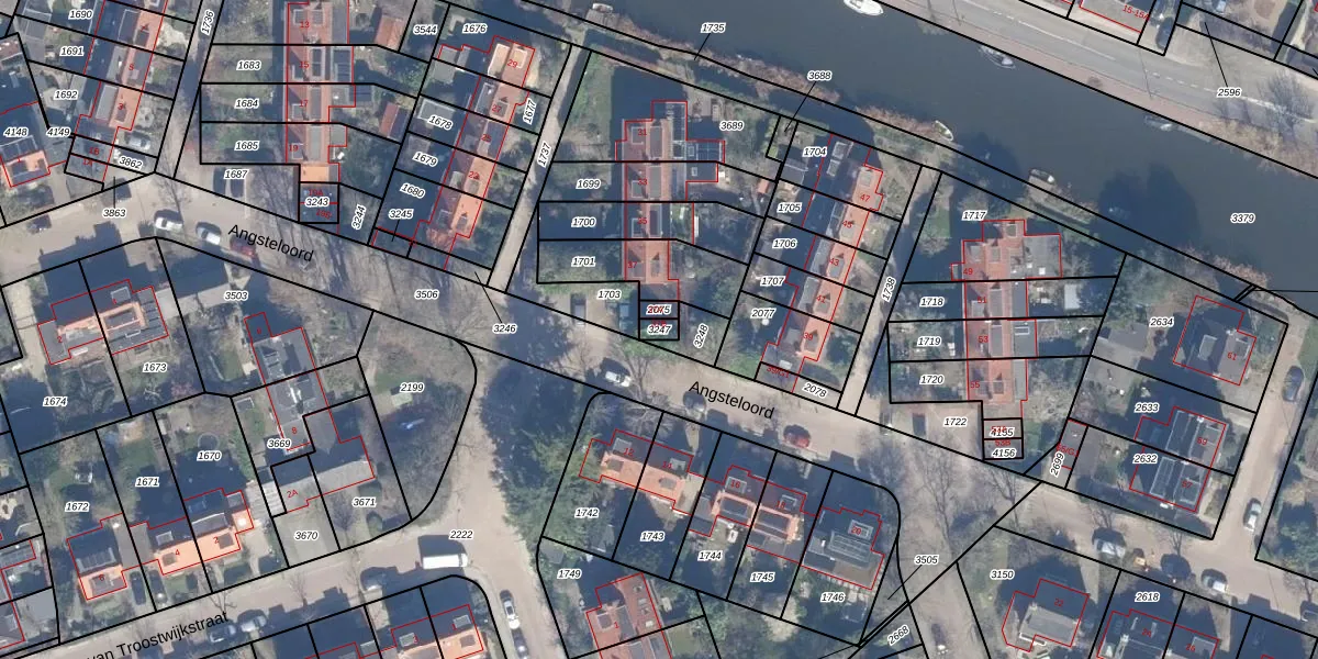 Angsteloord 37-B is gelegen op kadastraal perceel ACD00B3247. Deze kadastrale aanduiding is uniek en wordt gebruikt door het Kadaster om eigendomsrechten en andere zakelijke rechten vast te leggen. Het perceel maakt onderdeel uit van de kadastrale gemeente Abcoude.