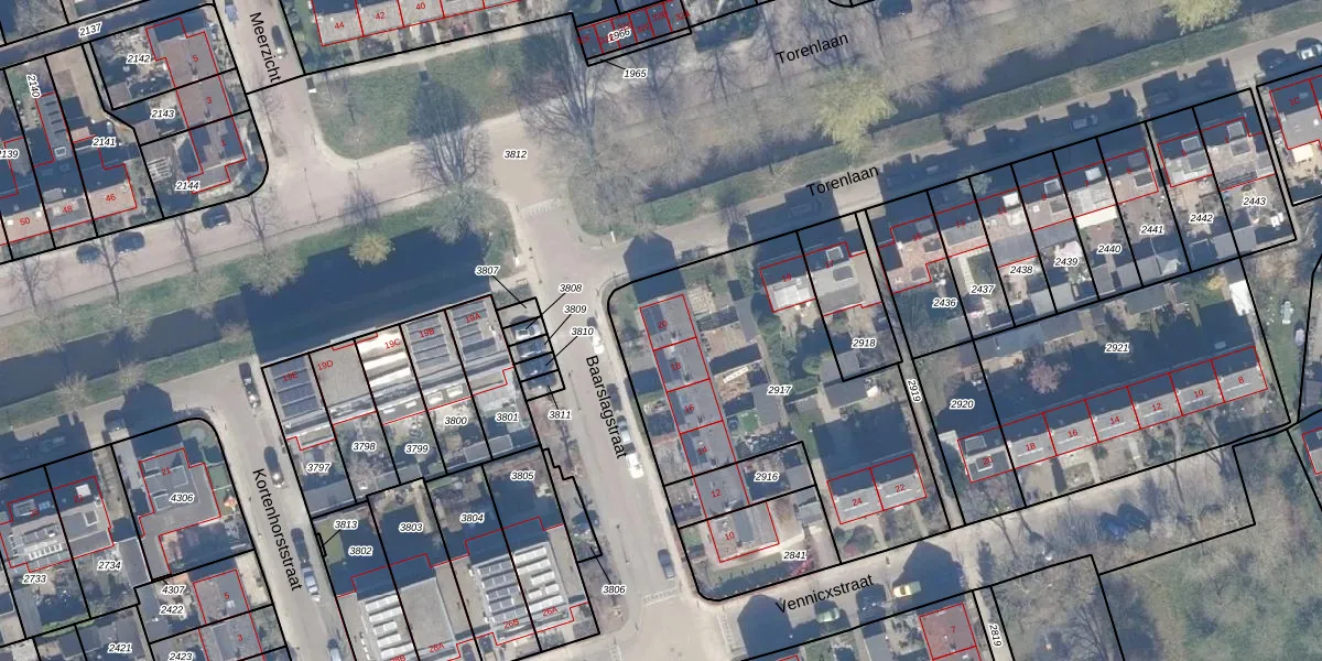 Het perceel waarop Baarslagstraat 20 staat heeft een oppervlakte van 1345 m². Dit is een zeer groot perceel. De perceeloppervlakte wordt geregistreerd door het Kadaster. Gedetailleerde informatie over de maten van dit perceel kunt u vinden in het rapport Kadastrale kaart met maatvoering van Baarslagstraat 20.