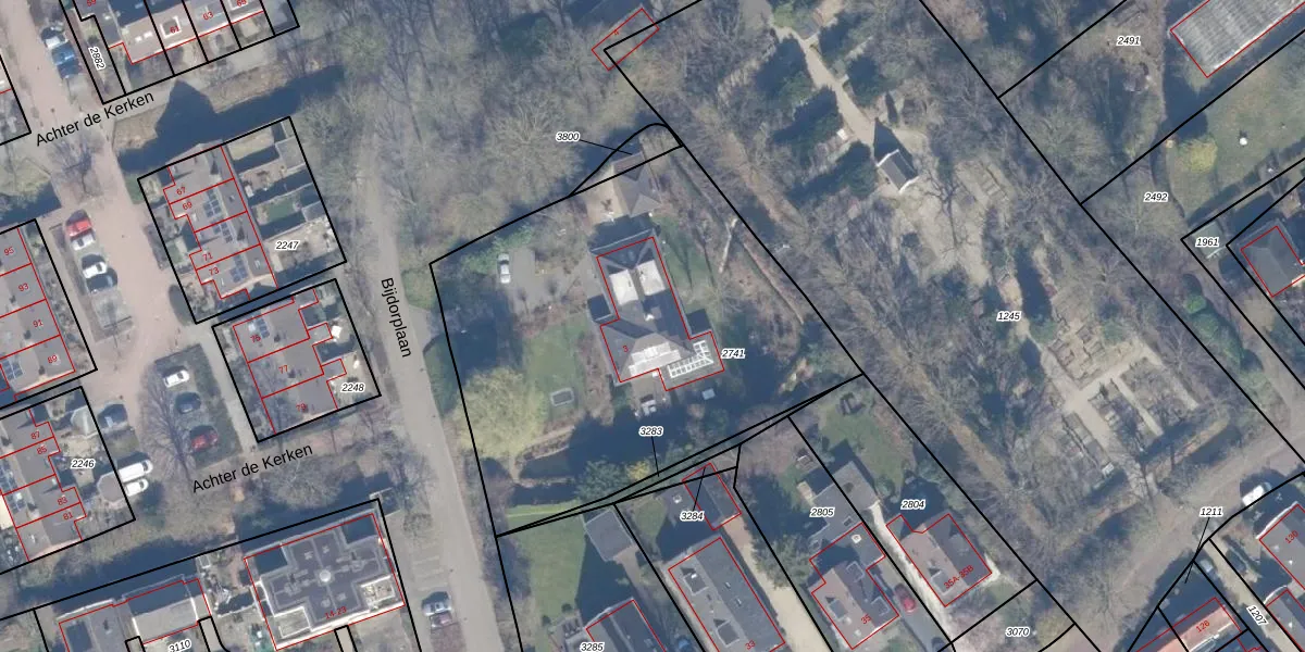 Het perceel waarop Bijdorplaan 3 staat heeft een oppervlakte van 2280 m². Dit is een zeer groot perceel. De perceeloppervlakte wordt geregistreerd door het Kadaster. Gedetailleerde informatie over de maten van dit perceel kunt u vinden in het rapport Kadastrale kaart met maatvoering van Bijdorplaan 3.