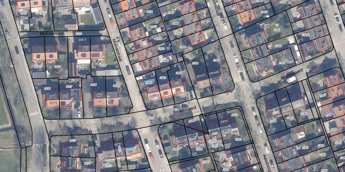 Het perceel waarop Blomswaard 10 staat heeft een oppervlakte van 266 m². Dit is een middelgroot perceel. De perceeloppervlakte wordt geregistreerd door het Kadaster. Gedetailleerde informatie over de maten van dit perceel kunt u vinden in het rapport Kadastrale kaart met maatvoering van Blomswaard 10.