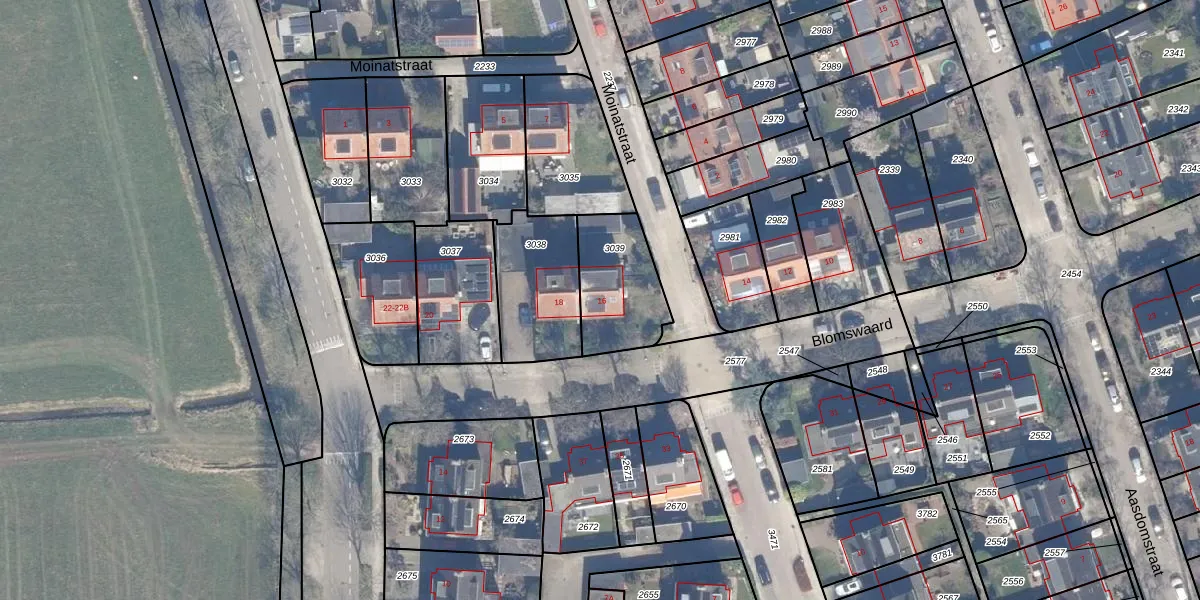 Het perceel waarop Blomswaard 16 staat heeft een oppervlakte van 287 m². Dit is een middelgroot perceel. De perceeloppervlakte wordt geregistreerd door het Kadaster. Gedetailleerde informatie over de maten van dit perceel kunt u vinden in het rapport Kadastrale kaart met maatvoering van Blomswaard 16.