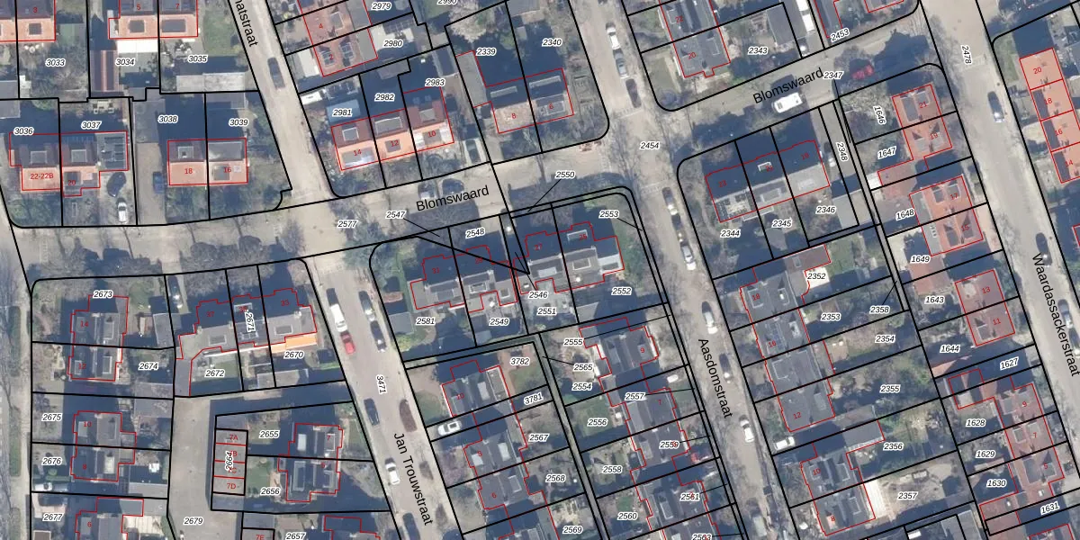 Gebruik de zoekbalk of klik op een perceel voor informatie over de adressen binnen dit perceel.