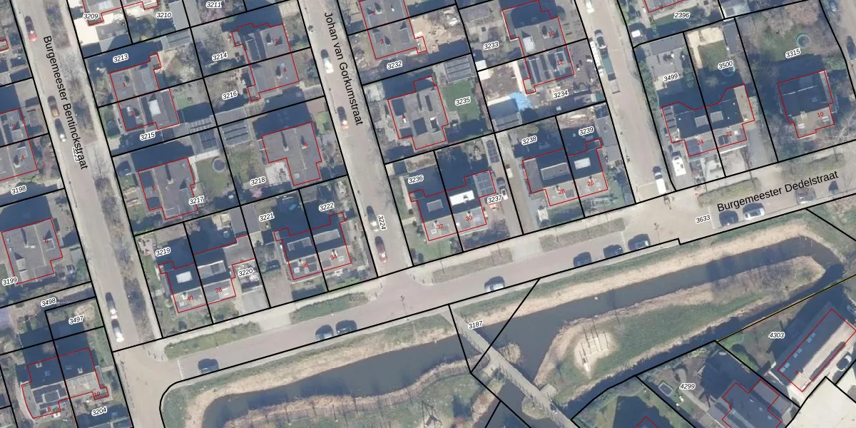 Gebruik de zoekbalk of klik op een perceel voor informatie over de adressen binnen dit perceel.
