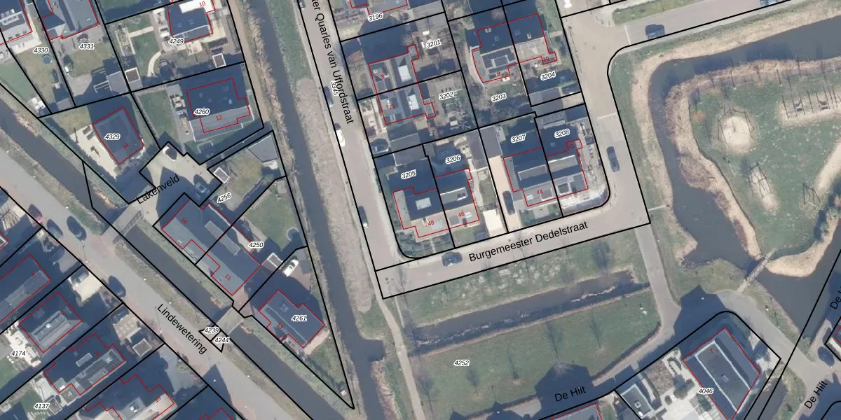 Het perceel waarop Burgemeester Dedelstraat 48 staat heeft een oppervlakte van 322 m². Dit is een groot perceel. De perceeloppervlakte wordt geregistreerd door het Kadaster. Gedetailleerde informatie over de maten van dit perceel kunt u vinden in het rapport Kadastrale kaart met maatvoering van Burgemeester Dedelstraat 48.