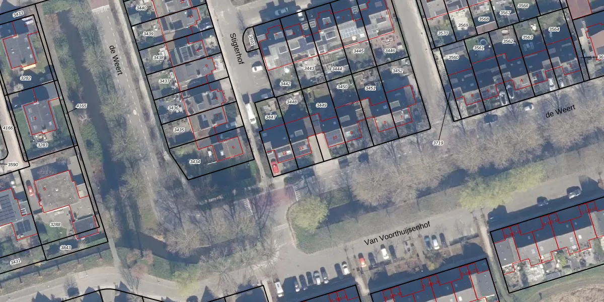 Het perceel waarop de Weert 11 staat heeft een oppervlakte van 217 m². Dit is een middelgroot perceel. De perceeloppervlakte wordt geregistreerd door het Kadaster. Gedetailleerde informatie over de maten van dit perceel kunt u vinden in het rapport Kadastrale kaart met maatvoering van de Weert 11.