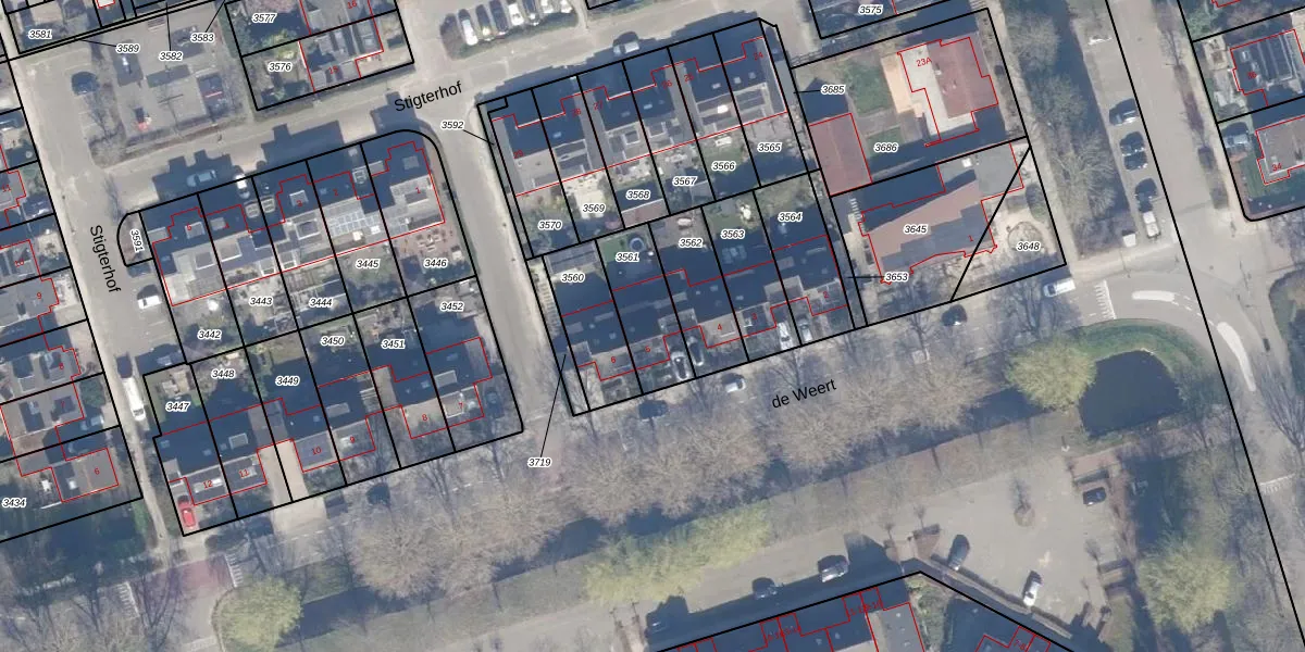Het perceel waarop de Weert 5 staat heeft een oppervlakte van 212 m². Dit is een middelgroot perceel. De perceeloppervlakte wordt geregistreerd door het Kadaster. Gedetailleerde informatie over de maten van dit perceel kunt u vinden in het rapport Kadastrale kaart met maatvoering van de Weert 5.