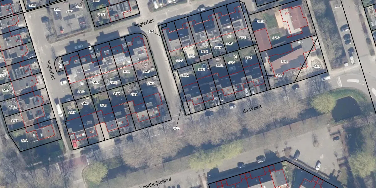 Het perceel waarop de Weert 6 staat heeft een oppervlakte van 212 m². Dit is een middelgroot perceel. De perceeloppervlakte wordt geregistreerd door het Kadaster. Gedetailleerde informatie over de maten van dit perceel kunt u vinden in het rapport Kadastrale kaart met maatvoering van de Weert 6.