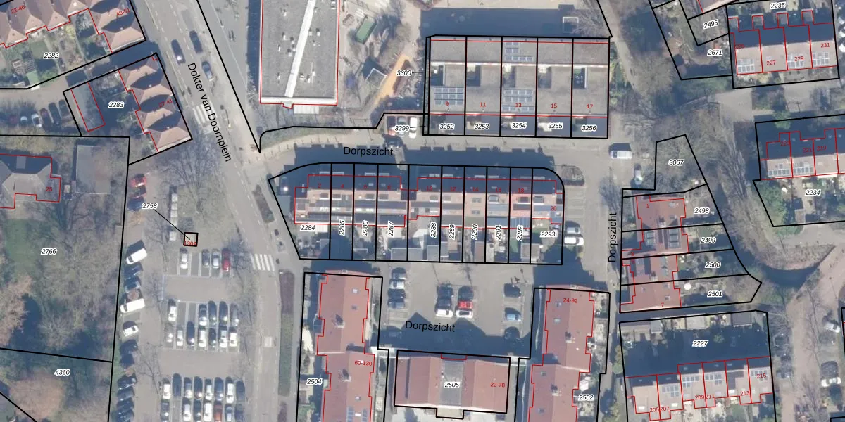 Het perceel waarop Dorpszicht 10 staat heeft een oppervlakte van 174 m². Dit is een middelgroot perceel. De perceeloppervlakte wordt geregistreerd door het Kadaster. Gedetailleerde informatie over de maten van dit perceel kunt u vinden in het rapport Kadastrale kaart met maatvoering van Dorpszicht 10.