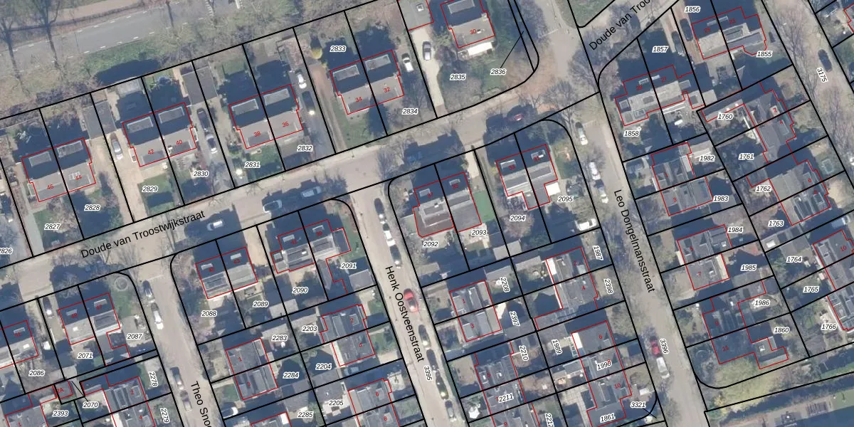 Gebruik de zoekbalk of klik op een perceel voor informatie over de adressen binnen dit perceel.