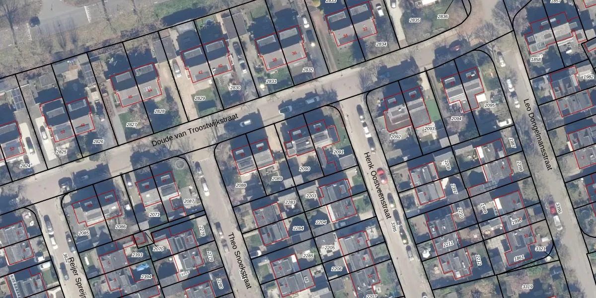 Gebruik de zoekbalk of klik op een perceel voor informatie over de adressen binnen dit perceel.