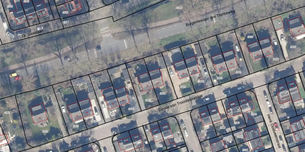 Het perceel waarop Doude van Troostwijkstraat 44 staat heeft een oppervlakte van 406 m². Dit is een groot perceel. De perceeloppervlakte wordt geregistreerd door het Kadaster. Gedetailleerde informatie over de maten van dit perceel kunt u vinden in het rapport Kadastrale kaart met maatvoering van Doude van Troostwijkstraat 44.