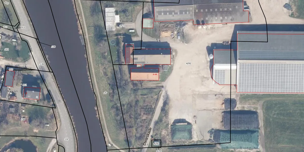 Het perceel waarop Dwarskade 4 staat heeft een oppervlakte van 7606 m². Dit is een zeer groot perceel. De perceeloppervlakte wordt geregistreerd door het Kadaster. Gedetailleerde informatie over de maten van dit perceel kunt u vinden in het rapport Kadastrale kaart met maatvoering van Dwarskade 4.