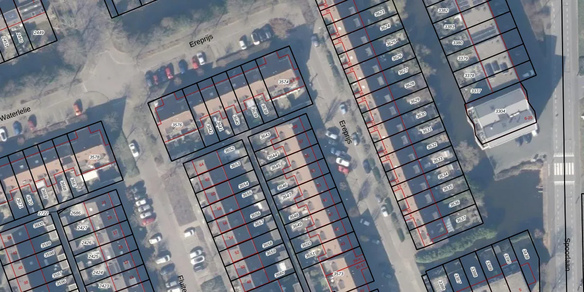 Het perceel waarop Ereprijs 57 staat heeft een oppervlakte van 115 m². Dit is een middelgroot perceel. De perceeloppervlakte wordt geregistreerd door het Kadaster. Gedetailleerde informatie over de maten van dit perceel kunt u vinden in het rapport Kadastrale kaart met maatvoering van Ereprijs 57.