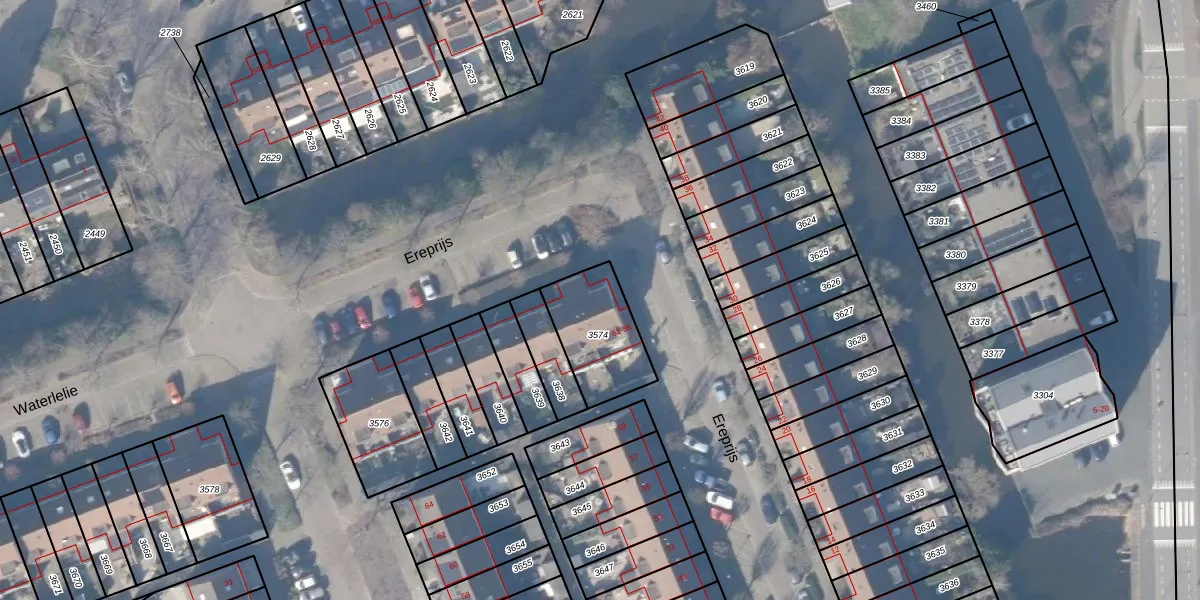 Het perceel waarop Ereprijs 63 staat heeft een oppervlakte van 274 m². Dit is een middelgroot perceel. De perceeloppervlakte wordt geregistreerd door het Kadaster. Gedetailleerde informatie over de maten van dit perceel kunt u vinden in het rapport Kadastrale kaart met maatvoering van Ereprijs 63.