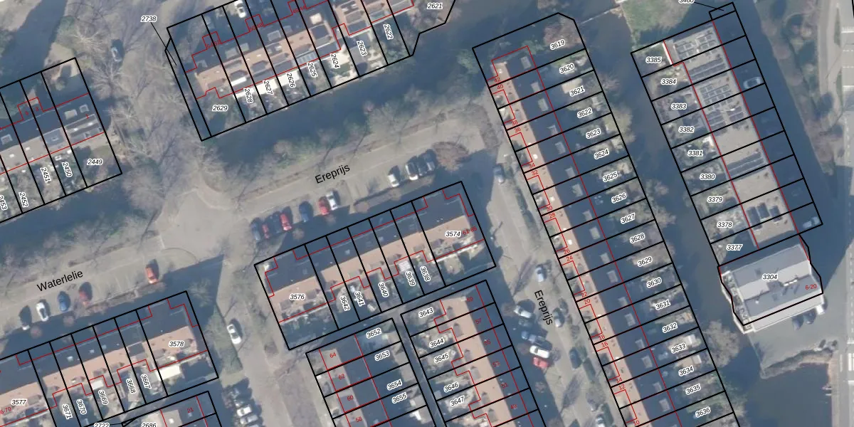 Het perceel waarop Ereprijs 65 staat heeft een oppervlakte van 274 m². Dit is een middelgroot perceel. De perceeloppervlakte wordt geregistreerd door het Kadaster. Gedetailleerde informatie over de maten van dit perceel kunt u vinden in het rapport Kadastrale kaart met maatvoering van Ereprijs 65.
