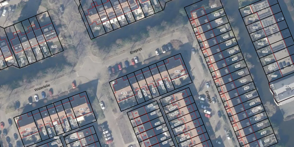 Gebruik de zoekbalk of klik op een perceel voor informatie over de adressen binnen dit perceel.