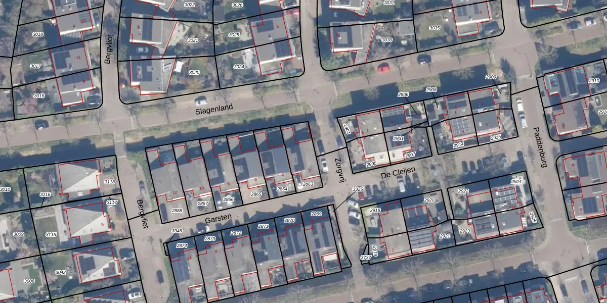Gebruik de zoekbalk of klik op een perceel voor informatie over de adressen binnen dit perceel.
