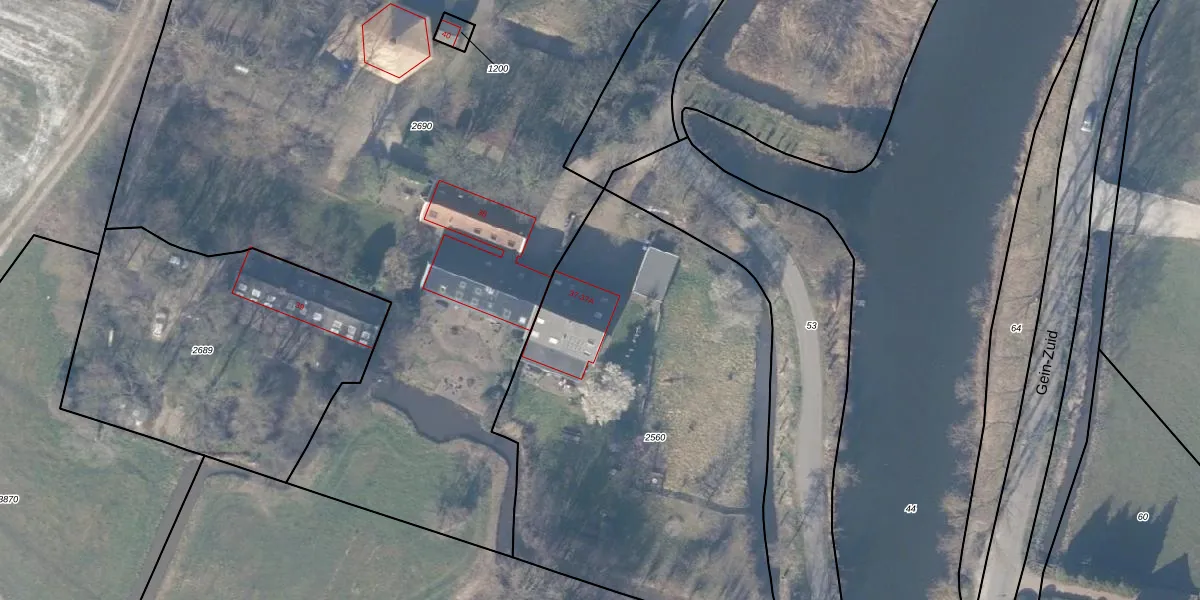 Het perceel waarop Gein-Noord 37 staat heeft een oppervlakte van 2480 m². Dit is een zeer groot perceel. De perceeloppervlakte wordt geregistreerd door het Kadaster. Gedetailleerde informatie over de maten van dit perceel kunt u vinden in het rapport Kadastrale kaart met maatvoering van Gein-Noord 37.