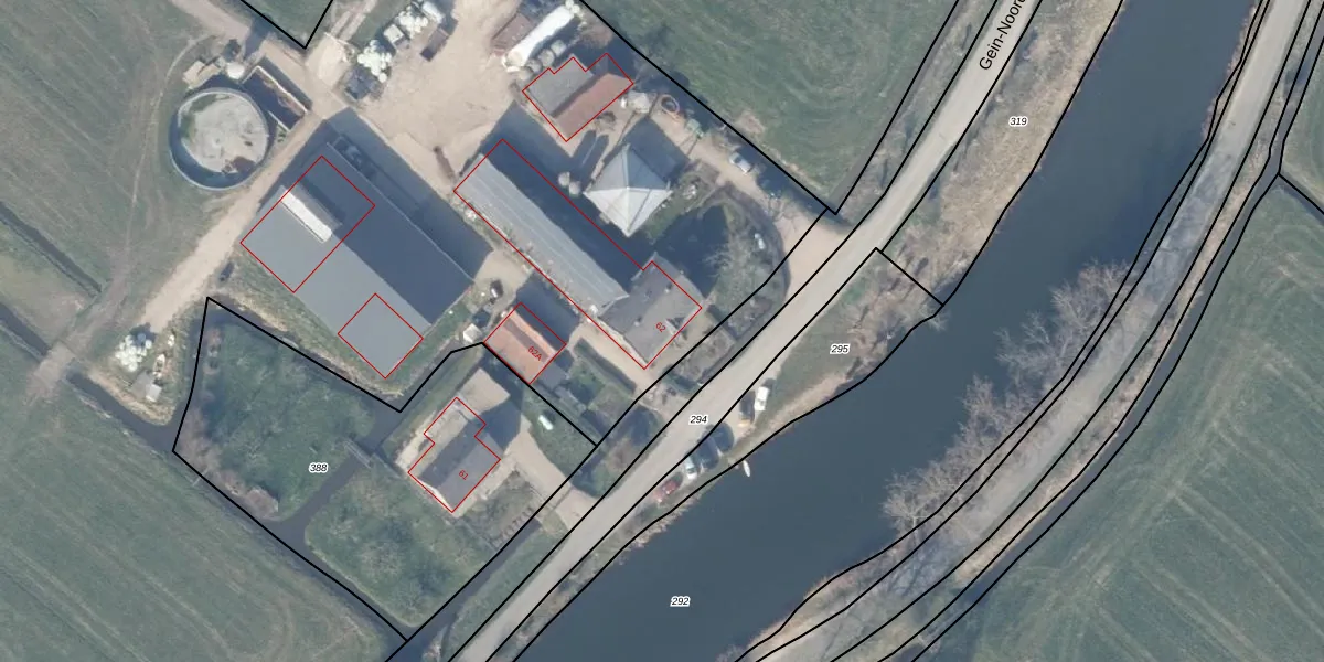 Het perceel waarop Gein-Noord 62 staat heeft een oppervlakte van 7,5 ha. Dit is een zeer groot perceel. De perceeloppervlakte wordt geregistreerd door het Kadaster. Gedetailleerde informatie over de maten van dit perceel kunt u vinden in het rapport Kadastrale kaart met maatvoering van Gein-Noord 62.