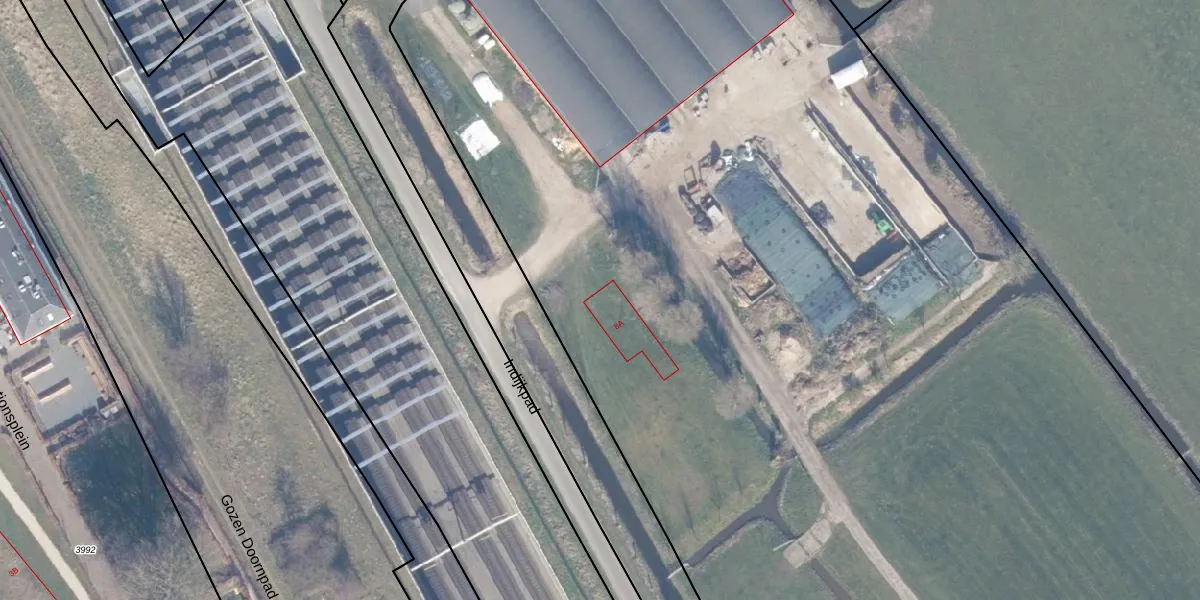 Het perceel waarop Gein-Zuid 8-A staat heeft een oppervlakte van 5,1 ha. Dit is een zeer groot perceel. De perceeloppervlakte wordt geregistreerd door het Kadaster. Gedetailleerde informatie over de maten van dit perceel kunt u vinden in het rapport Kadastrale kaart met maatvoering van Gein-Zuid 8-A.